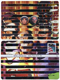 Wood cocktail stick, sticker, tabloid, paper, plastic, food packaging, and acrylic on printed cardboard