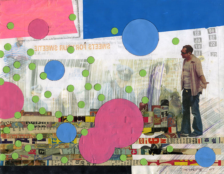 Tabloid, newsprint transfer, ink, and acrylic on 110lb paper