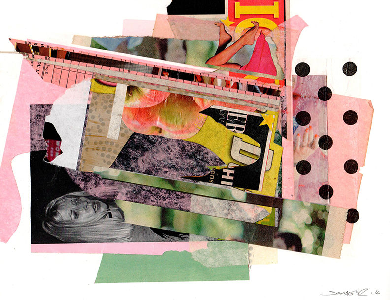 Tabloid, paper, tissue paper, acrylic, and pencil on 110lb paper