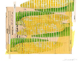 Tabloid, tissue paper, ticket stubs, tape, comic book paper, corn silk, acrylic, and pencil on 110lb paper
