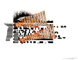 Paper, photocopy, tissue paper, silkscreen, dirt, acrylic, and pencil on 110lb paper