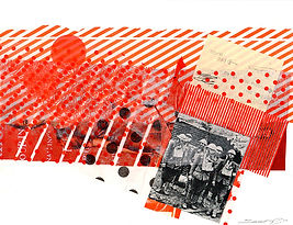 Tabloid, silkscreen, tissue paper, antique paper, transfer print, acrylic, and pencil on 110lb paper
