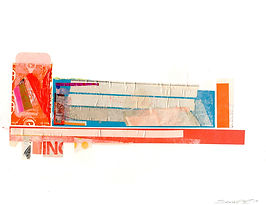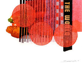 Tabloid, food wrapper, tissue paper, transfer print, acrylic, and pencil on 110lb paper
