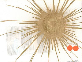 Tabloid, gold foil, tissue paper, photocopy, cray paper, acrylic, and pencil on 110lb paper