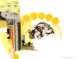 Tabloid, paper, photocopy, tabloid, tissue, silkscreen, colored pencil, ink, dirt, acrylic, and pencil on 110lb paper