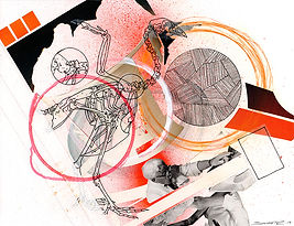 Tabloid, spray paint, tissue paper, paper, ink, acrylic, and pencil on 110lb paper